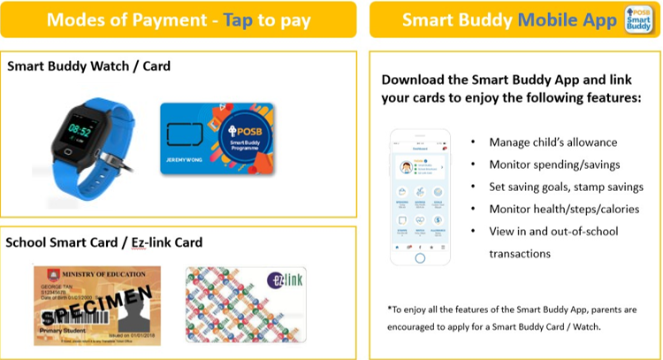 You can learn more about POSB Smart Buddy Programme and choose to apply here or watch this video to learn more about its features. Please note that a DBS/POSB bank account is required for application. The Smart Buddy pack will be sent to your bank registered mailing address within 7 working days upon successful application. For easier management, we strongly encourage parents/guardians to opt for the Smart Buddy card instead of the watch.